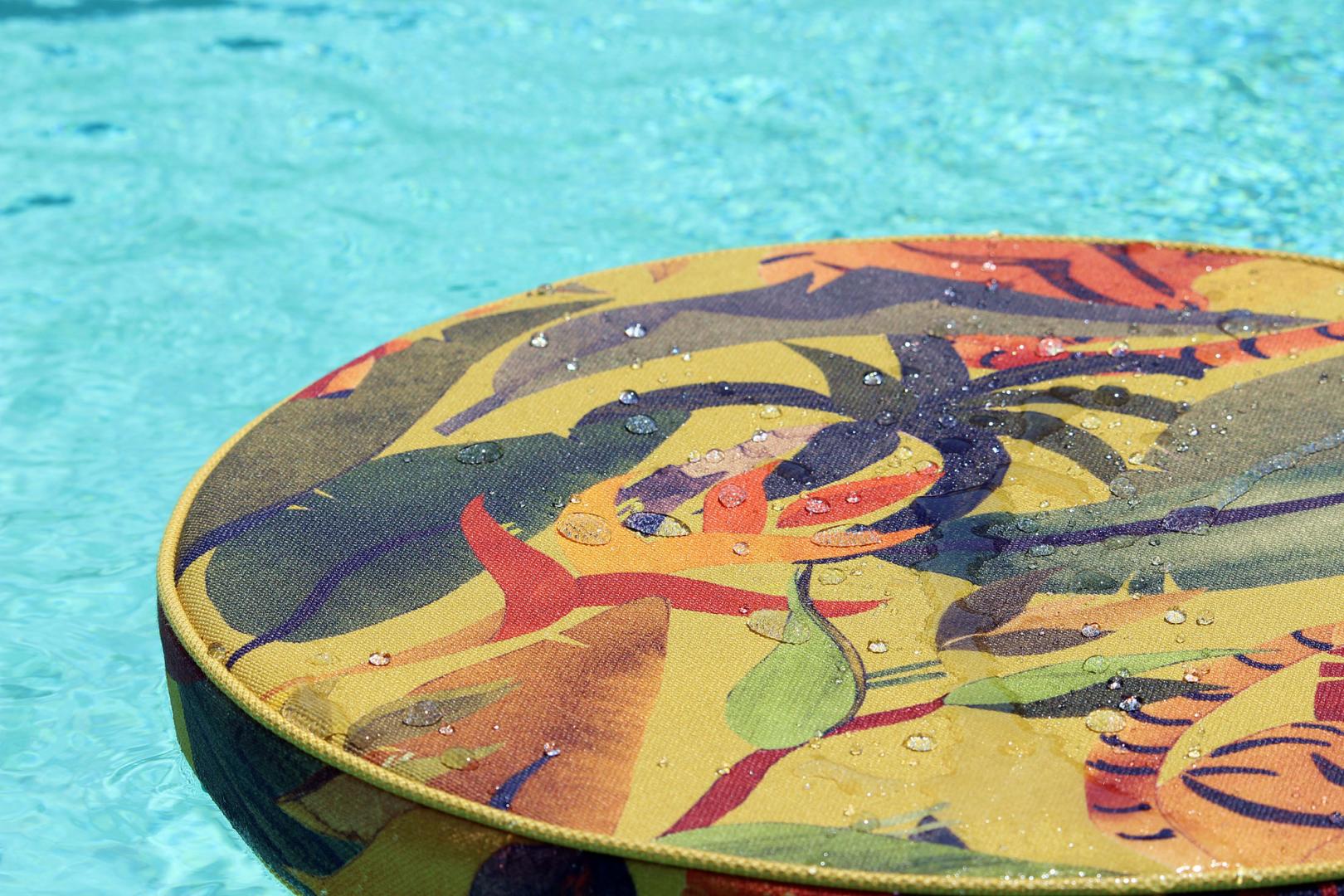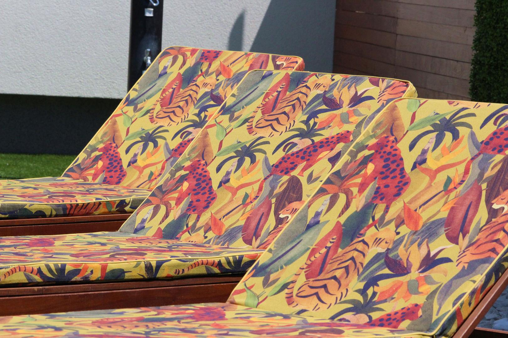 The MariaFlora Fantasia collection which was used in the project, explores an enchanting dream world where spectacular watercolors and imagination dance together, painting exotic creatures, lush jungles, romantic leaves and ballerinas, which in combination with the elegant Sunbrella Mezzo collection makes a perfect match and gives elegance to any outdoor space.