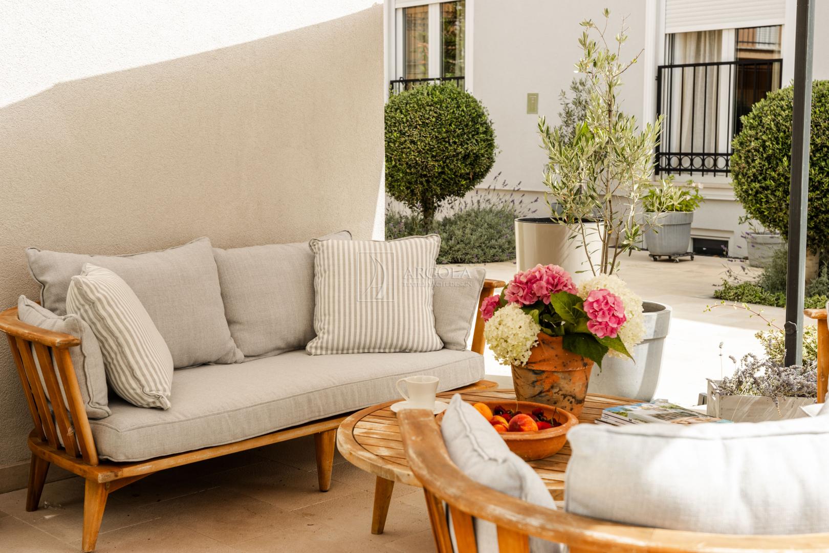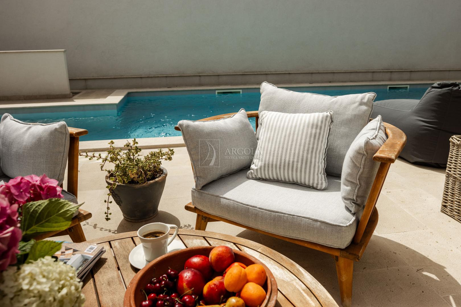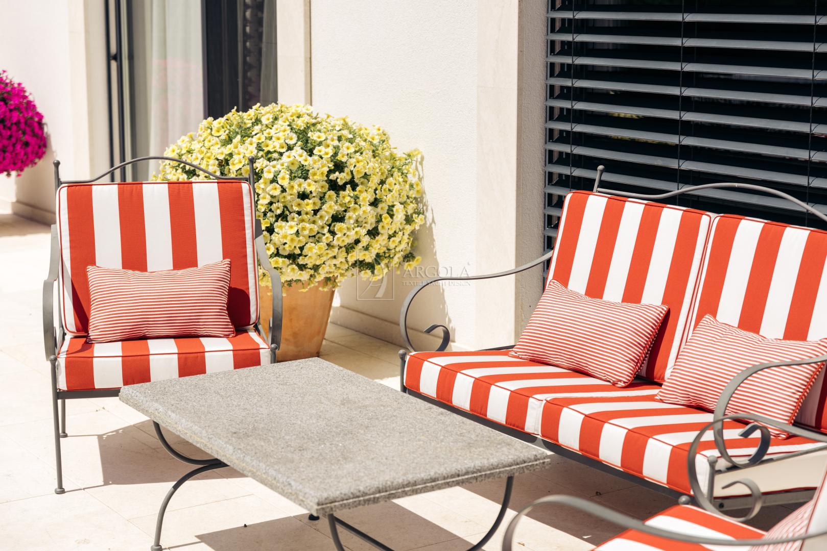 Naši outdoor jastuci su izdržljivi, elegantni i individualno prilagođeni vašim zahtjevima i željama. Uz savršenu kombinaciju materijala svjetski poznatih brendova i tehnologije spužve za vanjske uvijete, vaš vanjski dnevni boravak nadahnut će i ostaviti izvrstan dojam, a vama podariti nezaboravne trenutke odmora i opuštanja.